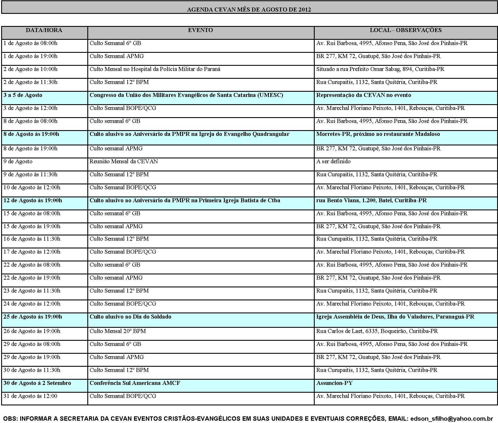 Agenda da CEVAN Paraná