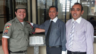 33º BPM INAUGURA O PROJETO BÍBLIA NA NA BRIGADA MILITAR. em 15 de março de 2013 em Cultura, Noticia Destaque, Noticias, Polícia, Sapucaia, Social Deixe um comentário No dia 13 de março, às 15h, na sede do 33º BPM , na Av João Pereira de Vargas nº 654 em Sapucaia do Sul foi realizada a inauguração do projeto Bíblia nas Companhias da Brigada Militar idealizado e realizado pelo Sargento Luis Carlos Gonçalves que atualmente está servindo no 33º BPM. Na tarde hoje, integrantes de diversas denominações religiosas e do comércio local estiveram prestigiando o evento. Em destaque o reverendíssimo Padre Adilson, representando a Igreja Católica, o pastor Paulo Neves do Conselho de Pastores de Sapucaia do Sul e o pastor da Assembléia de Deus da cidade de Novo Hamburgo, Coronel Salomão. Da iniciativa privada prestigiaram o evento o presidente do CDL Sr José Benck e o diretor da empresa Latina Auto Peças Mauro Sauthier, dentre convidados religiosos. O comandante do 33º BPM, major Ronie Coimbra, adotou a ideia do Sargento Luis Carlos para a Brigada Militar local, porque entende ser importante possibilitar a oportunidade, tanto para policiais militares do batalhão como também para pessoas que procuram o quartel para resoluções de conflitos, tenham um espaço de reflexão que lembrem o grande criador do universo. Essa forma de expressão religiosa foi escolhida porque não prega uma religião específica, mas leva a palavra de Deus a todos.