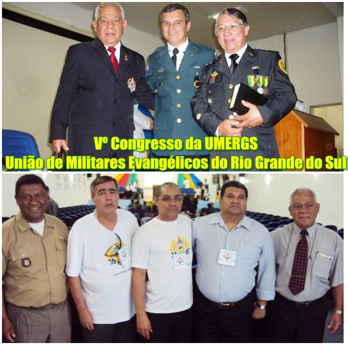 Ocorreu nos dias 17 e 18 de novembro, no Auditório da Academia de Policia Militar, gentilmente cedido, pela Diretoria de Ensino da Brigada Militar, para a realização do V CONGRESSO ESTADUAL DA UMERGS, reuniram-se Militares Evangélicos do Estado do Rio Grande do Sul, Santa Catarina, Paraná, Rio de Janeiro e São Paulo, constituindo-se num evento de grandes proporções, quanto ao envolvimento de Militares de Patentes Superiores, Intermediários e Praças das Forças Armadas, Forças Auxiliares, Bombeiros Militares e Policiais Civis, de diversas denominações evangélicas.