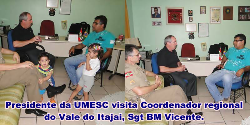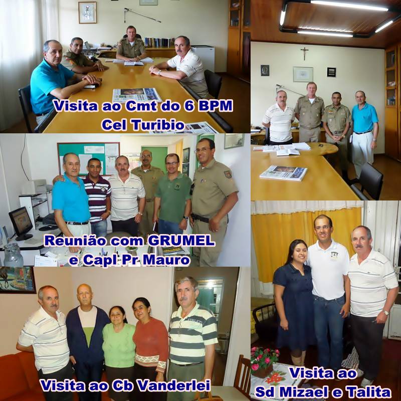 Visita ao Comando do 6ºBPM, Ten Cel Turíbio, agradecendo a este pelo apoio prestado ao GRUMEL/UMESC, com a participação do Sgt Wolff e do Sgt Antunes, secretário executivo da UMESC.