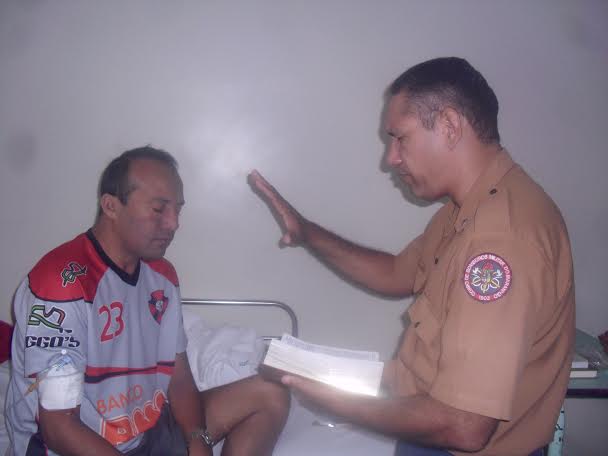 DIA 13 DE FEVEREIRO VISITA AO NOSSO MAJ QOCBM SEBASTIANE POIS O MESMO SE ENCONTRA HOSPITALIZADO NO HOSPITAL DO SERVIDOR O SEU QUADRO CLINICO É ESTÁVEL POIS ELE ESTA COM DIFICULDADES PARA ENXERGAR DO LADO DIREITO, MAS NA OCASIÃO PREGAMOS O EVANGELHO E LHE PRESENTIAMOS COM A BÍBLIA SAGRADA,POIS OS BOMBEIROS DE CRISTO E SECRETARIA DE EVANGELISMO DA UMCEB NO MARANHÃO ESTÃO FAZENDO A SUA PARTE QUE É LEVAR A PALAVRA DE DEUS A TODOS POIS CREMOS NO PODER DA ORAÇÃO ESTAMOS TRAVANDO UMA GRANDE GUERRA ,MAS NÃO VAMOS DESISTIR DA UM PASSO PARA TRÁS MAS VAMOS AVANÇAR PARA O SUCESSO DA VITÓRIA EM NOME DE JESUS POIS CREMOS QUE O MARANHÃO É DO SENHOR JESUS ESTAMOS FIRMES NAS PROMESSAS DO NOSSO REDENTOR, CAMINHANDO JUNTOS VAMOS ALCANÇAR O NOSSO MAIOR OBJETIVO QUE É A VONTADE DE DEUS QUE TODO HOMEM SEJA SALVO, A NOSSA PARTE ESTAMOS FAZENDO PEDIMOS A TODOS OS AMADOS QUE CONTINUEM A ORA POR NÓS, POIS PRECISAMOS DAS VOSSAS ORAÇÕES. DEUS É FIEL!!!