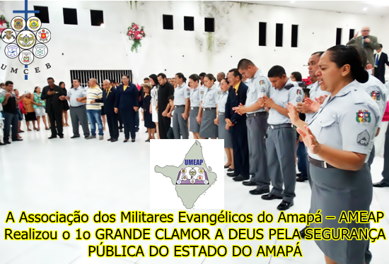 A Associação dos Militares Evangélicos do Amapá – AMEAP realizou no dia 05 de abril de 2014, na Catedral da Igreja Evangélica Assembléia de Deus – Zona Norte, Macapá, Capital do Estado, presidida pelo Reverendo Pastor Dimas Leire Rabelo, o 1o Grande Clamor a Deus pela Segurança Pública do Estado do Amapá, como ação preparatória para a realização do III Encontro Nacional de Líderes da UMCEB.