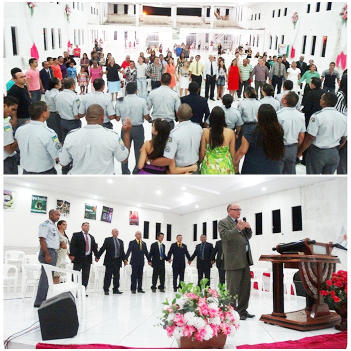 Sob o louvor Corpo e Família, o Ten PM Maciel concitou a todos os servidores da Segurança Pública que fossem a frente e, cercados pelos membros da Igreja do Senhor Jesus Cristo, todos, começaram um novo clamor ministrado pelo reverendo Pastor Dimas Leite Rabelo, finalizando o evento com a Benção Apostólica.
