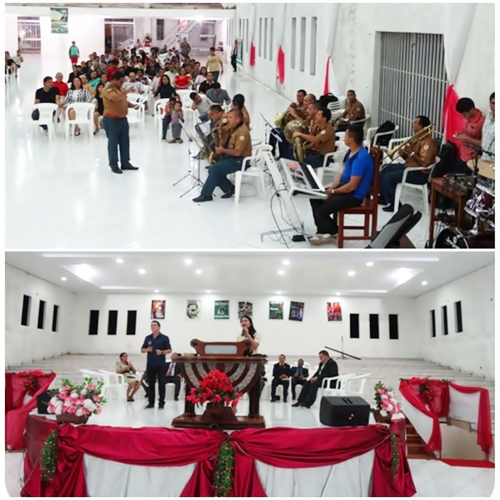 O evento foi iniciado às 19h30min, com oração e louvores acompanhados pela Banda de Música do Corpo de Bombeiros Militar do Amapá, tendo como dirigente litúrgico o Pastor Maciel, 2o Ten PM.
