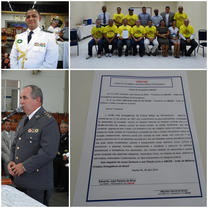 Durante a viagem missionária da UMCEB a Pernambuco tivemos uma surpresa maravilhosa em que o Cel PMPE Eduardo presidente da UNEVPMPE procurou a diretoria da UMCEB para filiar-se a União do ilitares Cristãos Evang~elicos do Brasil conforme o estatuto e regimento apoiando com 5% das entradas a Associação.